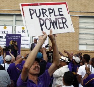 Purple Power!! That’s exactly what I see when I look at this photo. Now I have to admit; I graduated from St. Aug in 2004 and I haven’t done my due diligence in the form of going back to the school, talking to the kids and learning how I can help make that school and community better. With the recent disagreements over paddles and presidents there is one thing that stands out above it all and that is PURPLE POWER! I always knew St. Aug produced successful, young black men like myself but I never realized how much power we actually have. We have so many people involved in so many things that its ridiculous. Even just the young men I know and went to school with are enough to make positive change in this city and in our communities; IF we all come together. We need to get this city and our community back in order and who better to do it than the Purple Knights!!! We have doctors, lawyers, radio host, authors, entrepreneurs, CEO’s, presidents, chairmen, athletes, millionaires, farmers, politicians, dentists, pastors, preachers, GM’s, dancers, musicians, artists, photographers, engineers and everything else you can imagine. AND IT’S TIME WE DO SOMETHING.We’ll talk more about this as our journey continues but for now I’d like to do a Purple Knight Marketplace once a month in the yard at St. Aug. This would be a great way to bring businesses, fresh food, music and unity to a school, group and community of people who need it the most. It’s just one idea but its something that I think would have an exponential impact on the school and that area. So let’s talk about it.